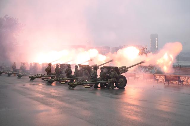 Počasnoj artiljerijskoj paljbi prisustvovali su državni sekretar u Ministarstvu odbrane Mile Jelić i komandant Garde...