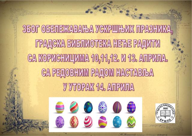Gradska biblioteka u Vršcu neće raditi za vreme praznika.