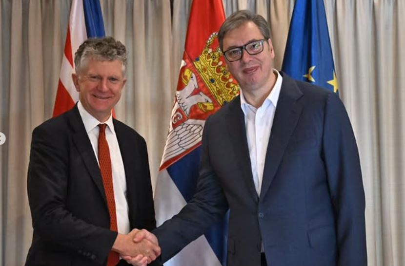 Predsednik Srbije Aleksandar Vučić sastao se danas sa savetnikom za nacionalnu bezbednost premijera Ujedinjenog Kraljevstva Džonatanom Pauelom i izjavio da su razgovarali o unapređenju bilateralnih odnosa dve zemlje, situaciji u regionu i aktuelnim geopolitičkim okolnostima. "Dobar razgovor sa savetnikom za nacionalnu bezbednost premijera Ujedinjenog Kraljevstva. Razmenili smo mišljenja o unapređenju naših bilateralnih odnosa, situaciji u regionu i aktuelnim geopolitičkim okolnostima", naveo je Vučić na Instagram nalogu "buducnostsrbijeav". Vučić je dodao da se sa sagovornikom saglasio da je očuvanje mira i stabilnosti od ključnog značaja i da dijalog i međusobno razumevanje ostaju najbolji put za prevazilaženje izazova sa kojima se suočavamo.